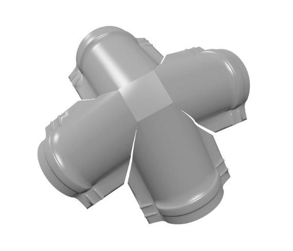 Четверники полукруглого конька применяются в качестве соединения полукруглых коньков на шатровых кровлях.