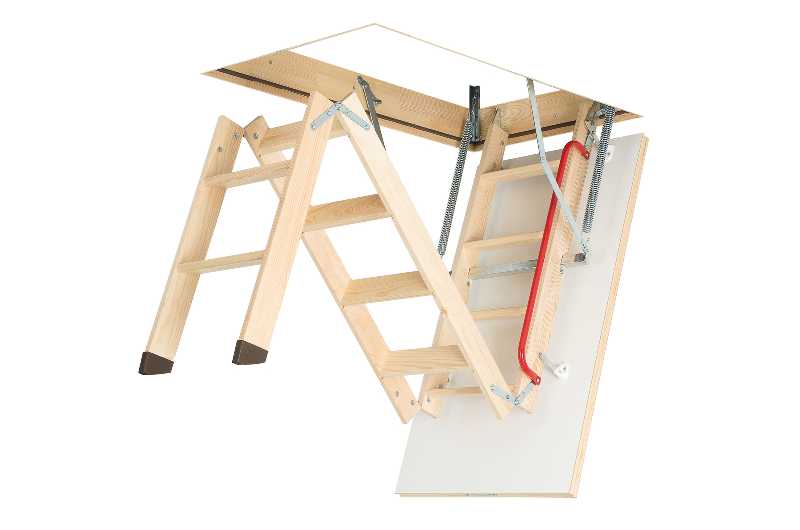 • Складная чердачная лестница позволяет сэкономить свободное пространство в доме. Она легко складывается и убирается для хранения в потолок, не занимает много места.