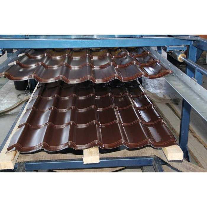 Металлочерепица Металл-Профиль Супермонтеррей 0,5 PURMAN® RR 32 Темно-коричневый - это качественный и надежный материал для кровли, который обладает высокой прочностью и долговечностью. Изготовлена из металла толщиной 0,5 мм, что обеспечивает ей устойчивость к внешним воздействиям и деформациям. Цвет темно-коричневый придает кровле элегантный и стильный вид, а также позволяет ей гармонично вписаться в любой архитектурный стиль. Металлочерепица имеет профиль Супермонтеррей, который обеспечивает надежное крепление и защиту от протеканий. Благодаря специальному покрытию PURMAN® RR 32, поверхность материала устойчива к коррозии, ультрафиолетовому излучению и атмосферным осадкам. Этот материал идеально подходит для строительства и ремонта крыш любого типа зданий.