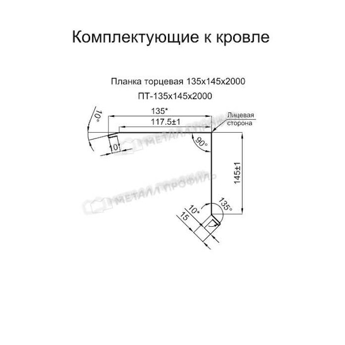 Планка торцевая 135х145х2000 (ПЭ-01-9002-0.5)