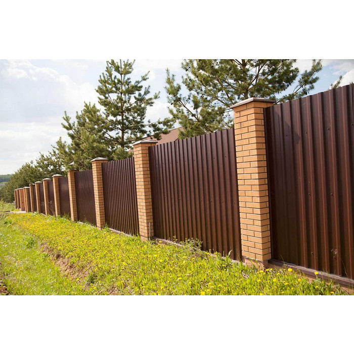 Профиль МП-20 имеет толщину 0,4 мм, что обеспечивает надежность и долговечность конструкции. Полиэстеровое покрытие RAL 8017 придает материалу красивый коричневый цвет, напоминающий шоколад.