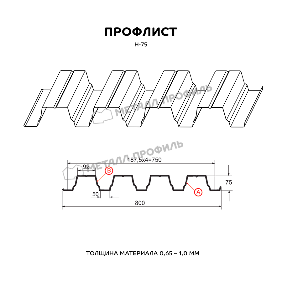 Профлист Металл Профиль Н-75 0,65 Полиэстер RAL 7004 Серый