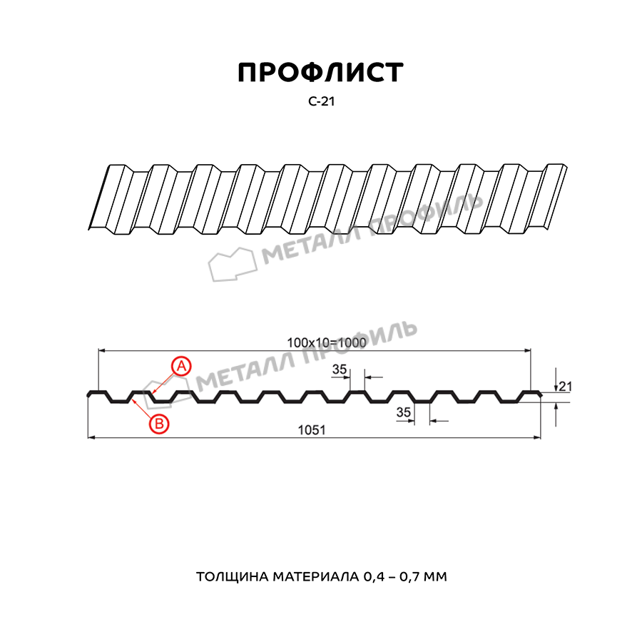 Профиль С-21 обладает высокой прочностью и устойчивостью к воздействию различных погодных условий, что делает его идеальным выбором для наружных работ.