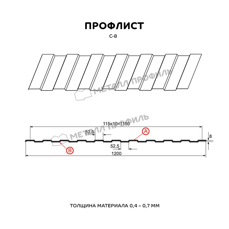Профлист Металл Профиль С-8 0,55 Цинк Бесцветный | A - это высококачественный строительный материал, предназначенный для использования в различных строительных проектах. Он изготовлен из прочного металла с толщиной 0,55 мм, что обеспечивает надежность и долговечность конструкции. Профиль С-8 имеет специальную форму, которая обеспечивает прочность и устойчивость к нагрузкам. Он идеально подходит для использования в качестве кровельного материала, так как обладает отличной водонепроницаемостью и защищает от атмосферных осадков. Цинковое покрытие придает профлисту дополнительную защиту от коррозии и повышает его стойкость к воздействию внешних факторов. Бесцветный цвет профиля позволяет легко вписать его в любой дизайн здания. Профлист Металл Профиль С-8 0,55 Цинк Бесцветный | A является надежным и практичным выбором для строительства и ремонта. Он легко монтируется и обладает высокой степенью устойчивости к механическим повреждениям. Благодаря своим характеристикам, этот профлист является оптимальным решением для создания качественной и долговечной кровли или фасада здания.