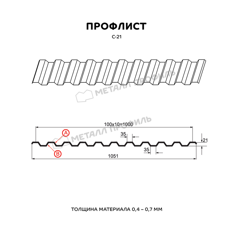 Профлист изготовлен из высококачественной стали толщиной 0.5 мм, что обеспечивает прочность и долговечность конструкции.