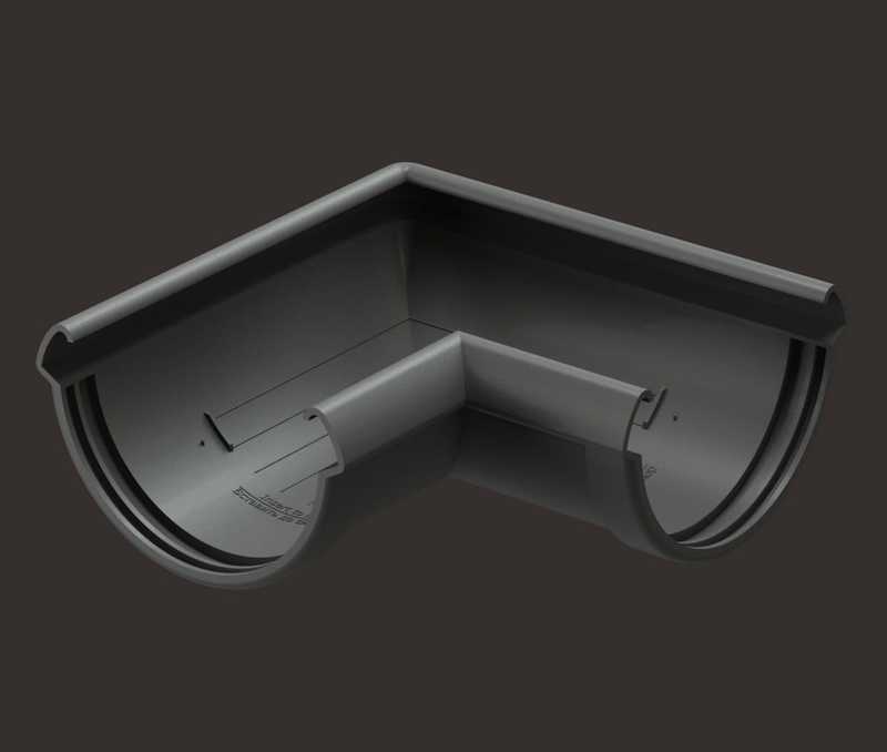 Угловые элементы устанавливаются как на внешних, так и на внутренних углах кровли и предназначены для соединения желобов.